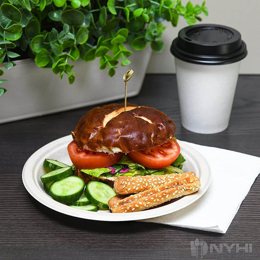 Heavy Duty Compostable Plates | 10 Inch Disposable Plates Made From Eco Friendly Sugarcane | These Party Paper Plates Are Great For Dinner, Appetizers, Camping, Catering, Concession Stands | 125 Pack